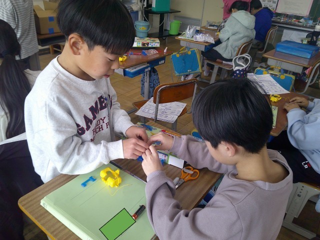 3年生 理科 公開日 2026/01/19 更新日 2026/01/19 学校長より めあて「どんなものが電気を通すか」今日はそのための装置を作り。友達と協力して、どう線を上手に電池ボックスにつないでいました。