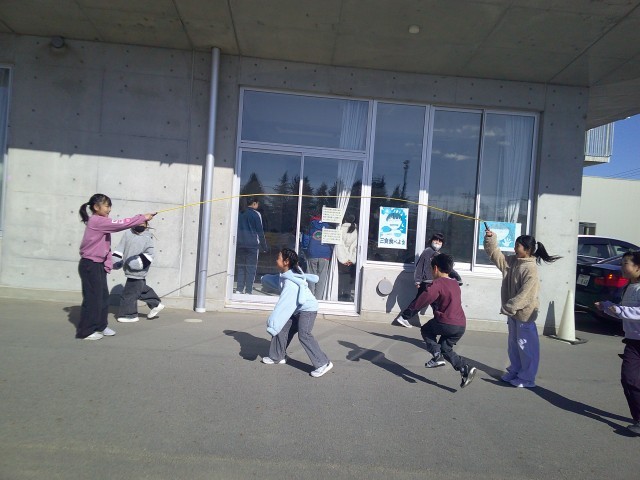 少しだけ残った雪で雪遊びをしたり、元気になわとびをしたりと元気いっぱいです。