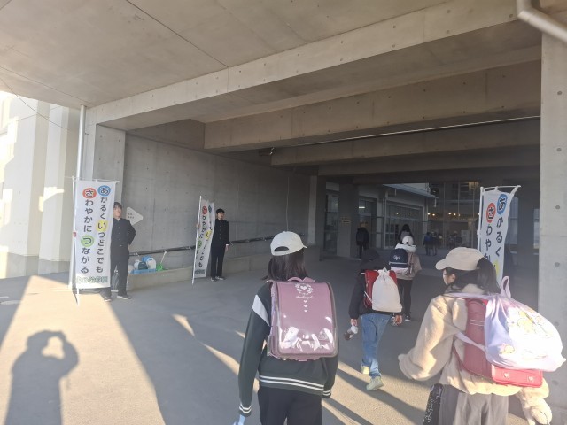 児童生徒会あいさつ運動 公開日 2026/02/16 更新日 2026/02/16 学校長より 月曜日は児童生徒会のあいさつ運動の日です。寒い日でも風の強い日でも、元気に「おはようございます!!!」のあいさつ。急ぎ足で通り過ぎないで、大きな声であいさつしてくれるとうれしいですね。