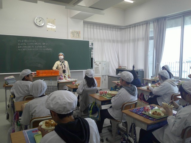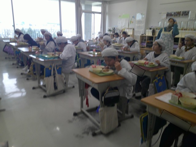 クラスのみんなで一生懸命考えました。みなさん、おいしく味わって食べてください。」と6年1組の給食委員さんが放送してくれました。