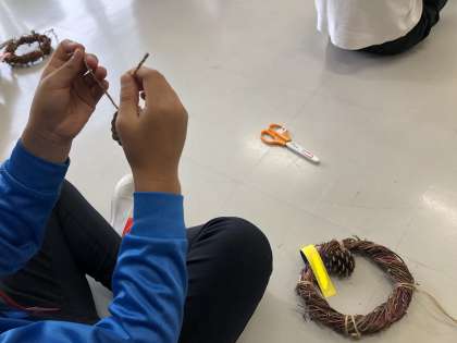 朝から落ち着いて 公開日 2022/10/14 更新日 2022/10/14 お知らせ 1〜3年生の金曜日の朝は、「読み聞かせ」から始まります。 みんな夢中になって聞いています。 とても落ち着いた空気が流れています。 1年生の生活科の授業です。 春に種をまいた朝顔が夏に咲き、 そして秋には、そのつるでリースになりました。 校庭で拾った松ぼっくりやどんぐりで飾りをつけていました。 ひもを器用にしばっていました。 仕上がりが、とても楽しみです。