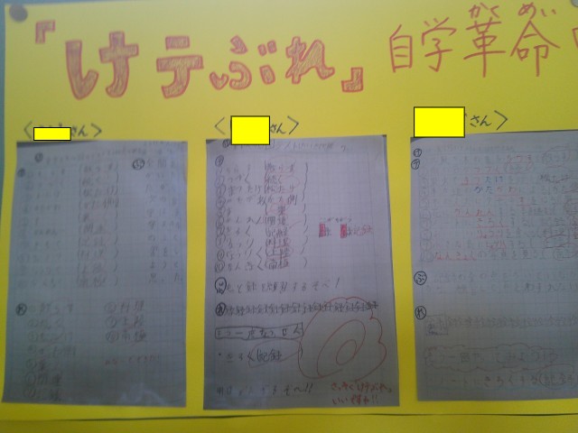 5,6年生はソーラン節の「はっぴ作り」・・・背中にかっこいい「漢字一文字」が光っています。