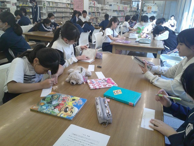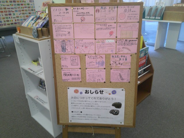 ポップアートは作ってありましたが、今度はおすすめ本の横に添える紹介文を作っていました。