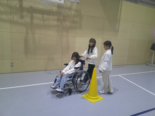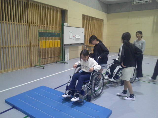 ○車椅子体験・・・・段差のところで、車椅子が止まってしまい大変だった。「力を入れて押すから気をつけて」など