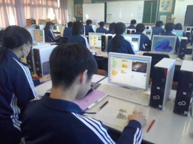 キャラクターを自由に動かしたり、ジャンプをさせたりするための命令を入力していました。