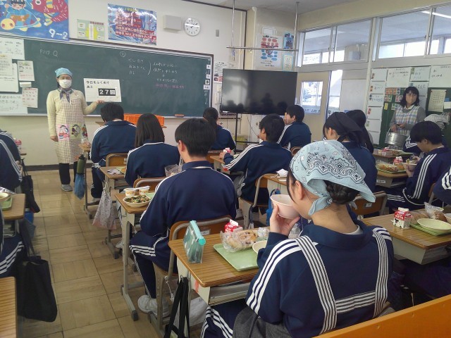 9年生は、今日を含めて給食は残り27回。9年2組さんのリクエスト献立もおいしく栄養バランスが整っていました。
