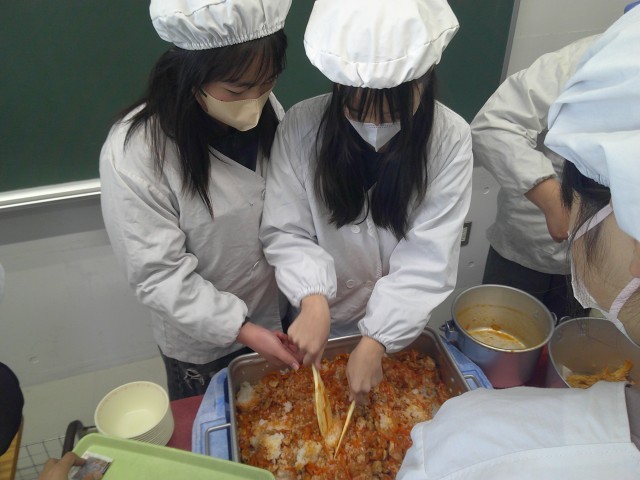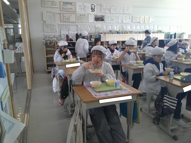 9年生は、今日を含めて給食は残り27回。9年2組さんのリクエスト献立もおいしく栄養バランスが整っていました。