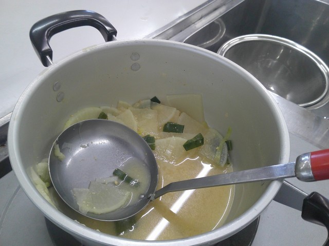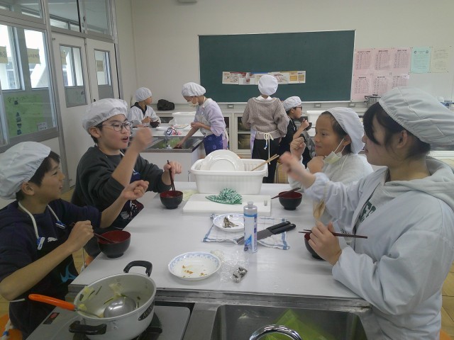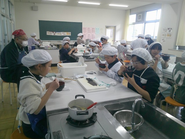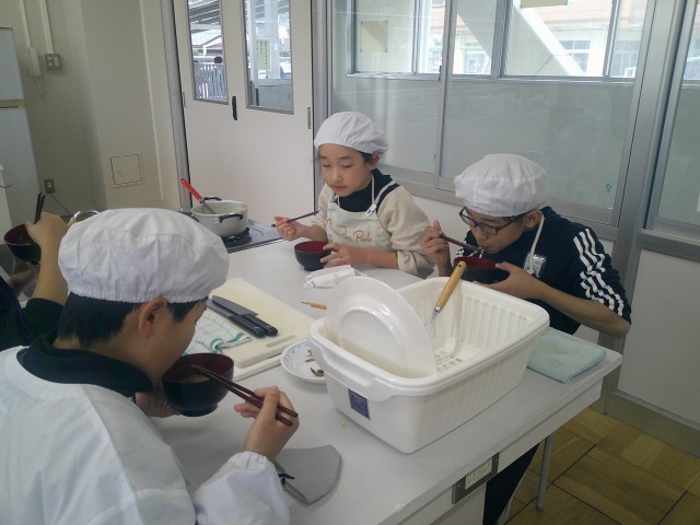 調理後に、おいしそうにみそ汁をいただくところにお邪魔しました。