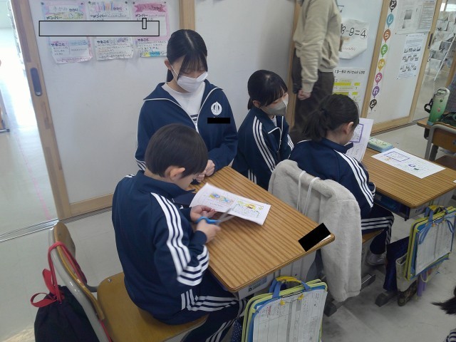 進路が決まっている9年生が、1年生の教室にお手伝いに来てくれました。