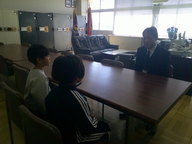 緊張した様子でしたが、上手にインタビューできました。教室でインタビュー内容もきちんとまとめていました。
