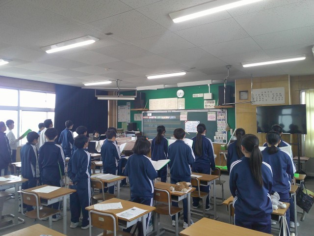 歌唱テストの後は、9年生を送る会の歌練習。