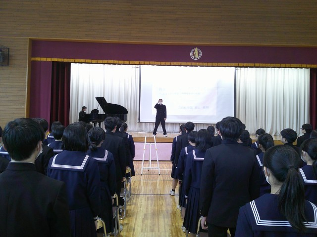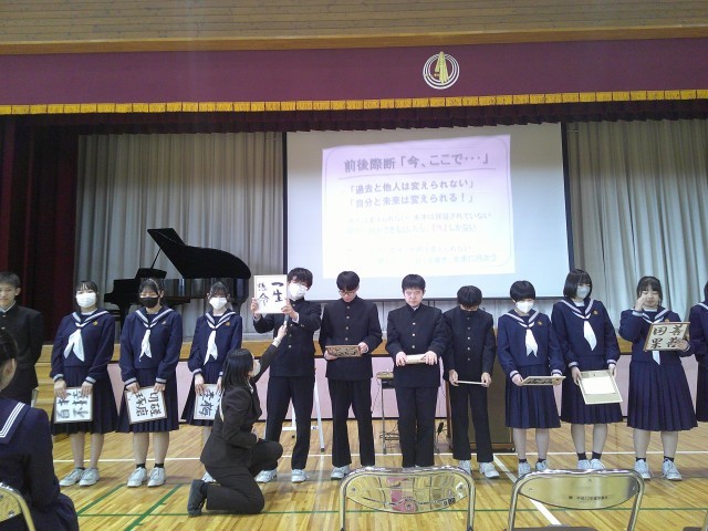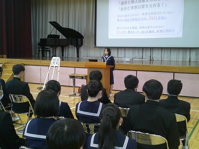 一人一人座右の銘を発表しました。自分の夢(進路)に向けて力強く歩き出してほしいです。