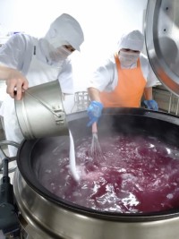 今日は、アロエを入れたいちごゼリーを作りました。 熱湯の中にいちごゼリーの素を入れると、きれいなピンク色になり、給食室にあまい香りが広がりました。 各クラスの角食缶にゼリー液を配食し、デザート用のア...
