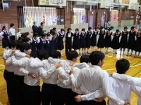 3年生は歌う前に全員で円陣を組んでいました。さすが3年生、学年合唱「あなたへ」は...