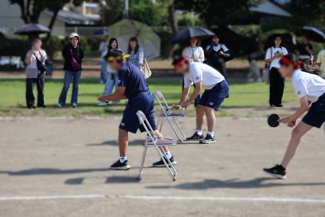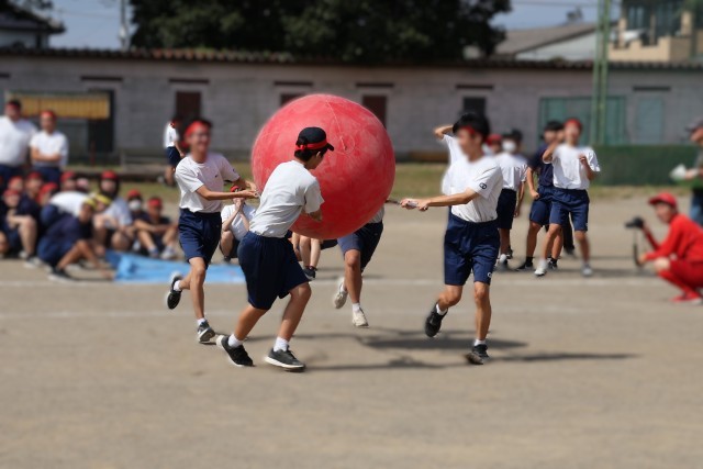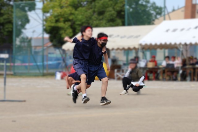 晴天に恵まれ、GODOリンピックを実施しました。GODOリンピックは生徒会が主催し、実行委員会が企画運営する生徒主体の体育祭です。今年のスローガンは「"Enjoy Today" 今日を楽しむ」です。これは全校生徒に募集して決められたものです。また、美術文化部がスローガンを入れた旗を作成してくれました。生徒主体のGODOリンピック、「"Enjoy Today" 今日を楽しむ」を合い言葉に、仲間と協力して楽しみながら競技に取り組んでいました。