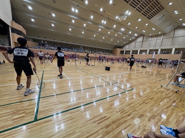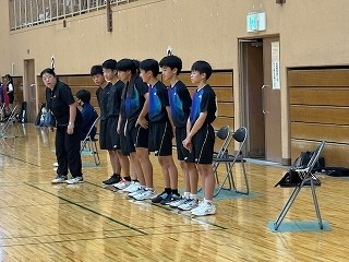 9/28 バドミントンは市民体育館で団体戦がおこなわれました。女子は残念ながら1回戦敗退となりましたが、男子は東中と対戦し、勝利を収めました。