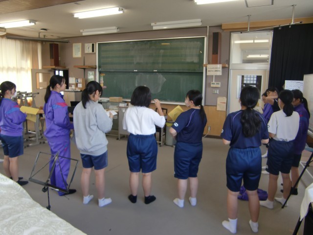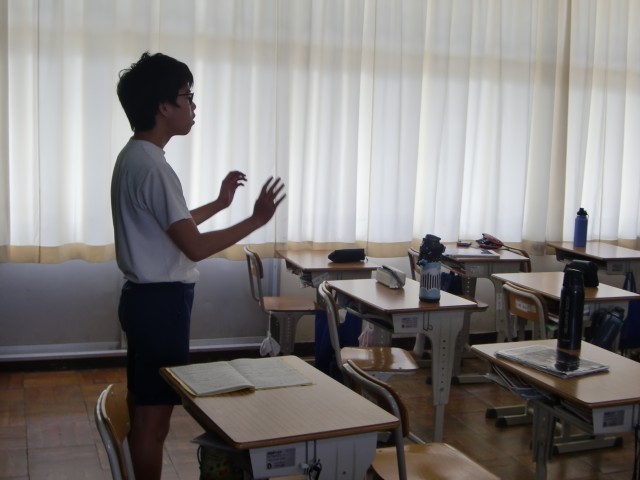 男子は教室で練習中。担任は生徒会選挙の準備で不在でしたが、生徒達だけでもどんどん練習できるところが、さすが3年生ですね!