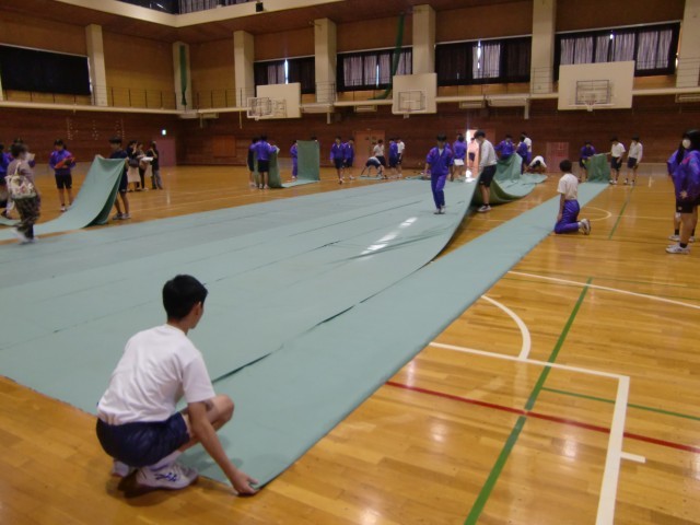 体育館の準備や後片付けも生徒が自分たちでおこないました。