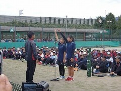 ソフトテニスの県大会は、18日に個人戦、19日に団体戦がおこなわれました。両日とも、強戸中の選手が選手宣誓を務め、立派に大役を果たしました。