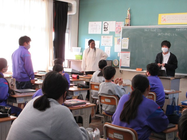 2校時、1年B組で松村先生が、初任者研修の一環で英語の授業を公開してくれました。