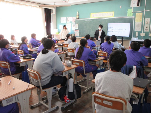 「相手の知らないおすすめの場所を紹介しよう」という内容で、生徒は新しい文法事項を取り入れながら、太田市内の図書館や神社などを紹介していました。