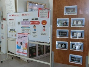 生徒玄関では、保健委員が作成したエイズデーに関する掲示があります。
