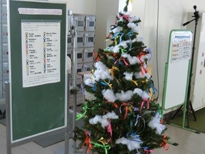 また、クリスマスツリーの横には、人権にちなんだカラーリボンの意味を紹介しています。