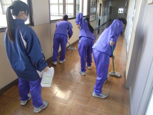 放課後は整備清掃委員会の人たちが廊下にワックスをかけてくれました。