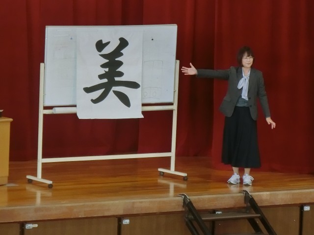 きょうは2学期を漢字一文字で表してみました。様々な行事に全力で取り組んできた生徒の姿にピッタリな『美』を選びました。