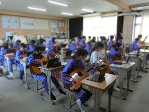 3学期に入り、2年生の音楽ではギターについて学習しています。