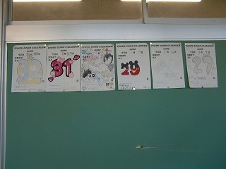 3年生の廊下にカウントダウンカレンダーが貼られ始めました。