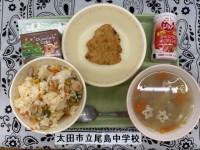今日はふわふわスープ、チンゲンサイソティ、照り焼きハンバーグでした。