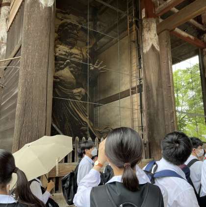 ガイドさんの説明を聞いて、写真を撮ってますね