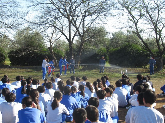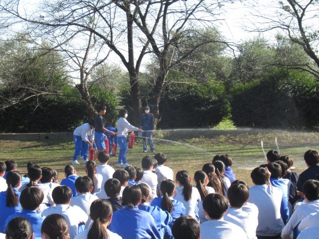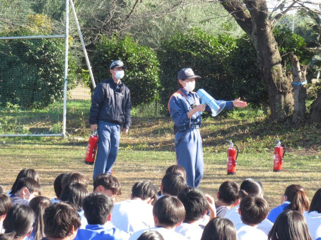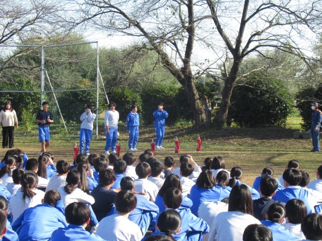 本日、昼休みから5校時にかけて第2回避難訓練を実施しました。太田消防署尾島分署の署員の方にご指導いただきました。
