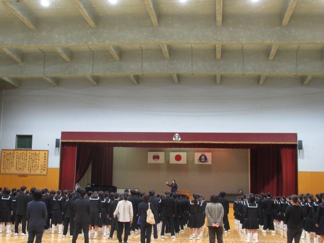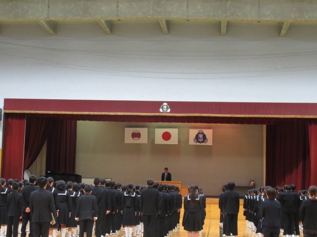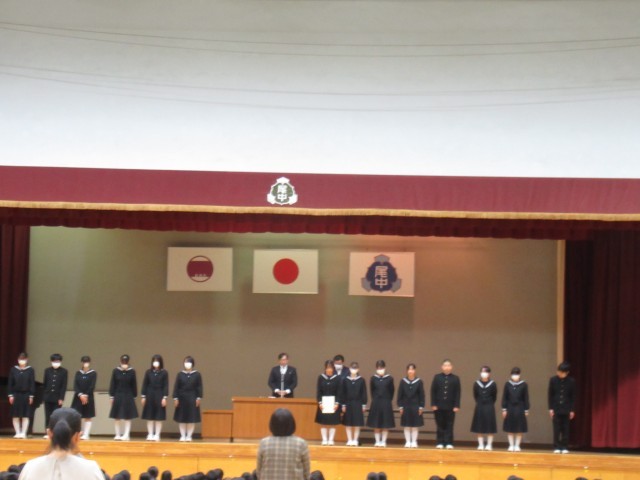 本日、尾島中の体育館で令和7年度2学期終業式を行いました。