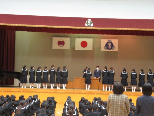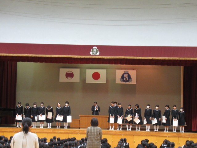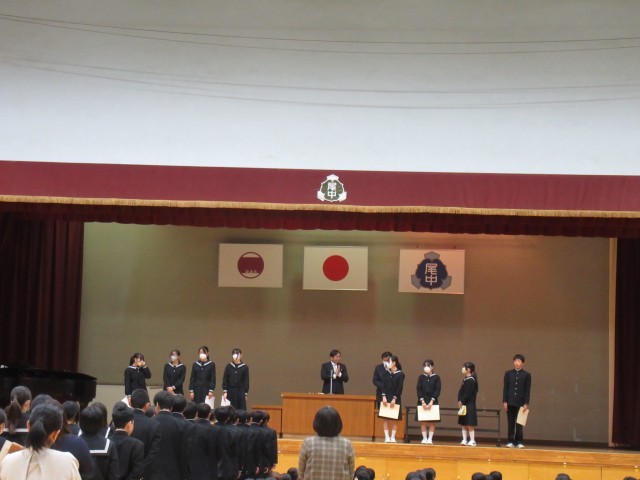 終業式の後には表彰式がありました。「陸上部女子」「バドミントン部女子」「テニス部女子」「バスケットボール部女子」「吹奏楽部」のみなさん、そして、「第75回社会を明るくする運動 標語・作文」「令和7年度市内小・中学校読書感想文コンクール」「中学生の税についての作文」「令和7年度群馬県よい歯と口の学級コンクール」で入賞したみなさんでした。皆さんのこれからの活躍を応援しています。