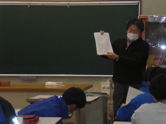 今日は、3-3と3-4の保健委員、教育実習生の2人で1年生の教室へ行き、熱中症ミニ講座を行いました。