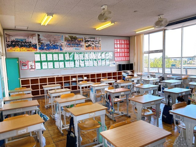 入学したときには丁度良いサイズ感だった机と椅子が少し小さく見えました!