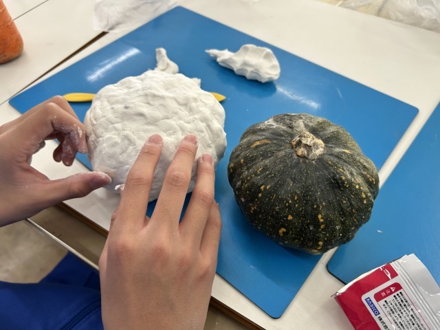 ある生徒が持ってきたニンジンは、足のようになっていて面白い!その足がまさかの落とした拍子に折れてしまいましたが…その生徒は「題名を骨折にしよう!」ととても楽しそうに作っていました!