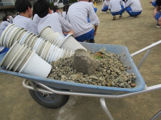 校庭の石拾いもして怪我なく競技できるようにしました。