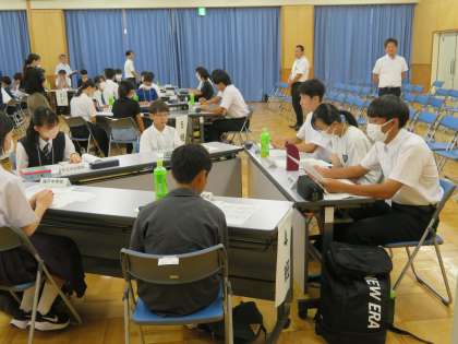 宝泉中の代表生徒が宝泉中の取組を紹介し、他校の実践についても積極的に質問していました。