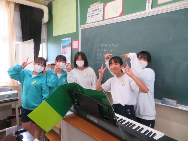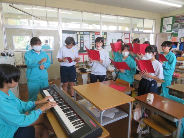 合唱の練習とJRC委員の昼の放送の様子です。