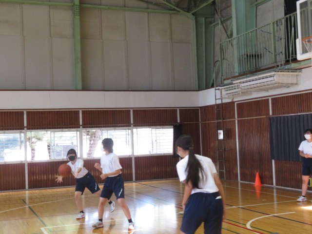 3年女子体育、バスケットボールの授業の様子です!