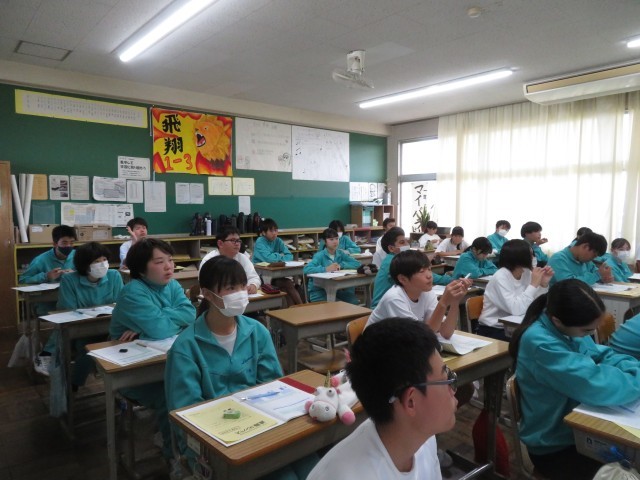 2年生では高校入試の概要説明、1年生では職業についての学習を行いました。