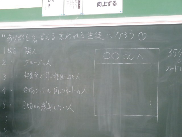 学校行事や普段の学校生活を通して友達にありがとうのメッセージカードを書きました。
