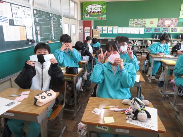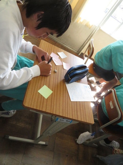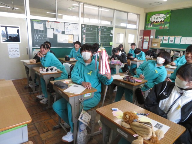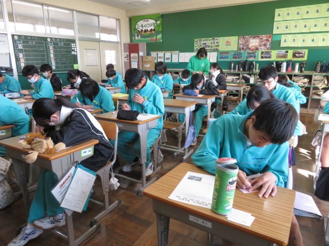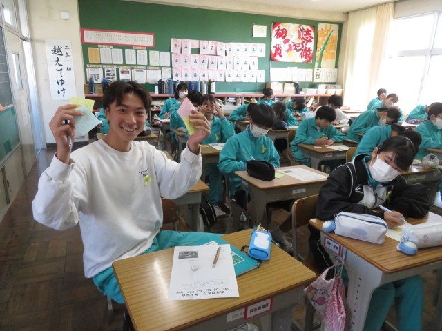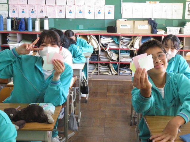 心を込めてたくさんの友達にメッセージを丁寧に書き込む様子が見られ、教室内が温かい雰囲気に包まれていました!