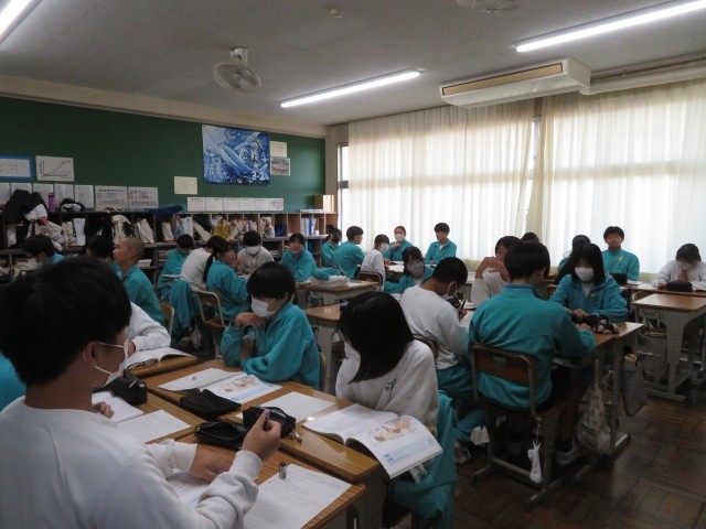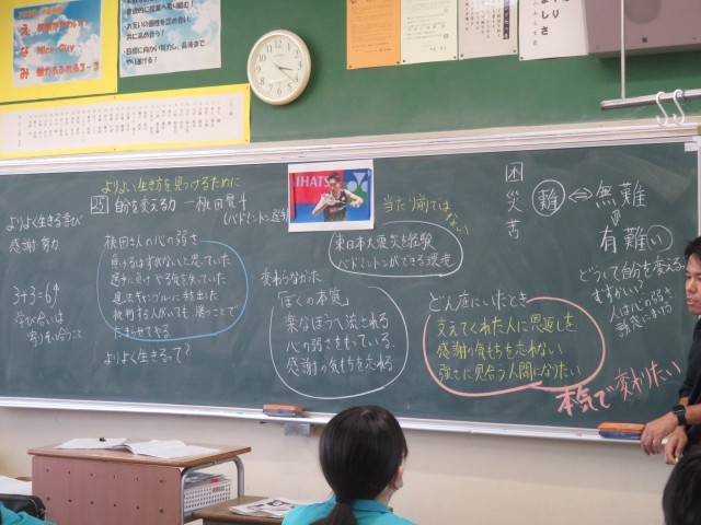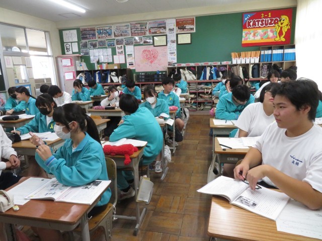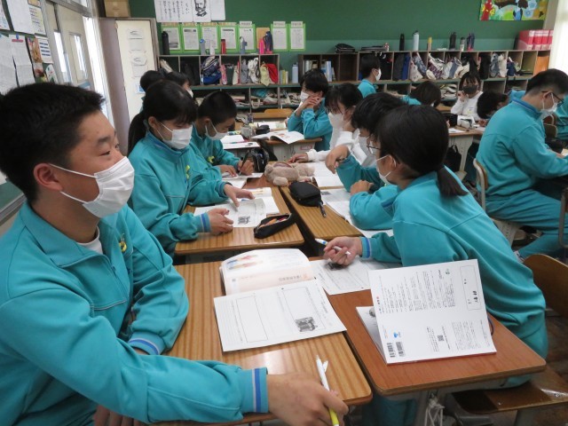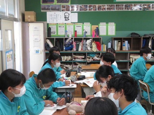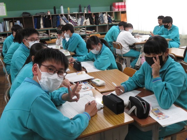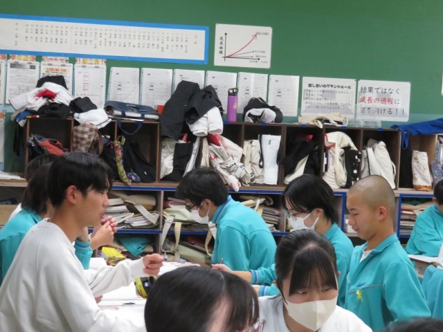 担任の先生方がオリジナル教材で学級をローテーションして授業をしています。