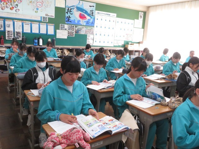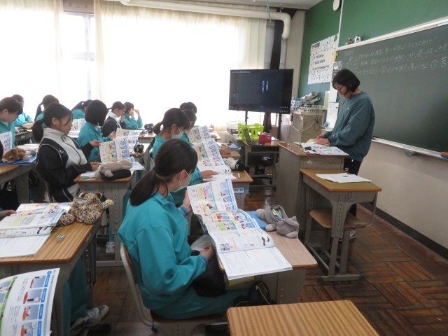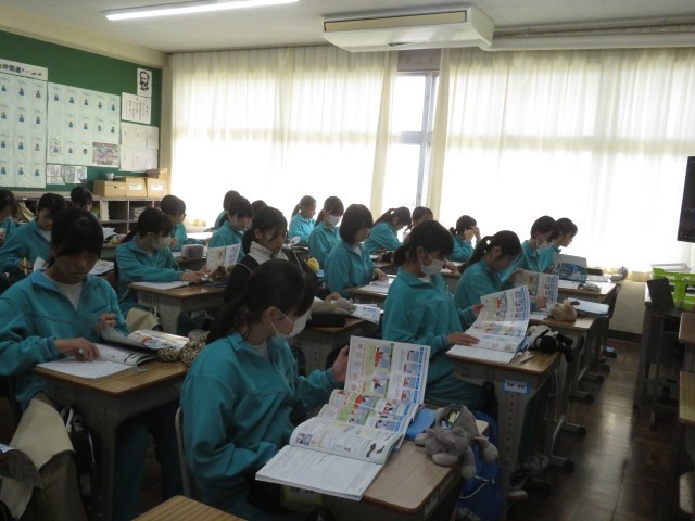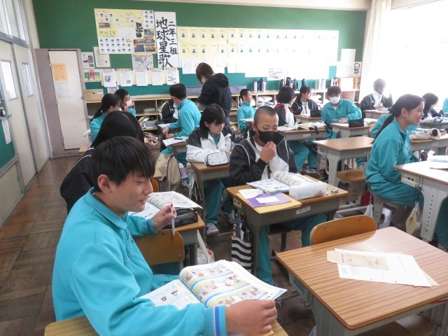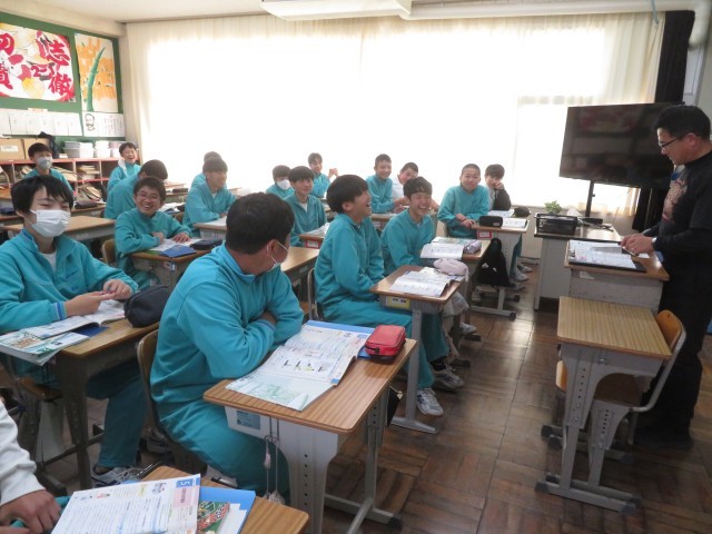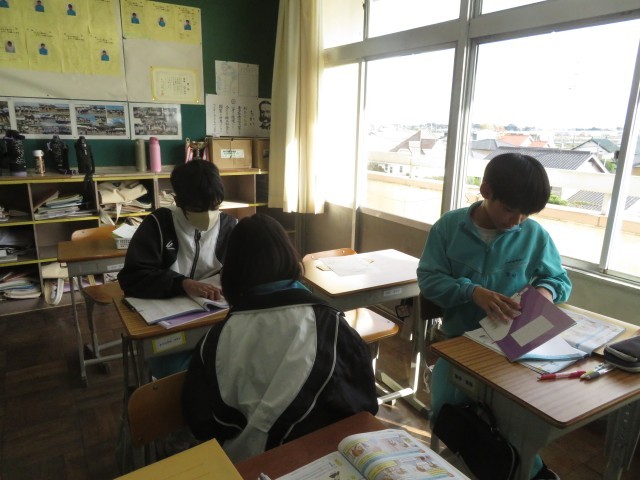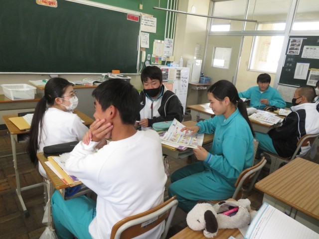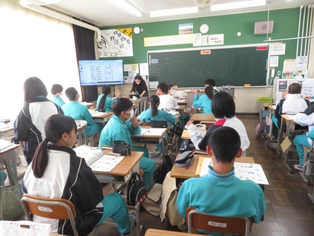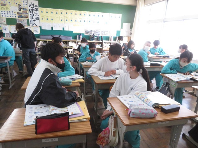 給食後ですが、集中して教師の話を聞いたりペアで意見交換を行っていました!
