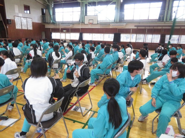 2年生で5時間目に福祉教育に関する集会を行いました。