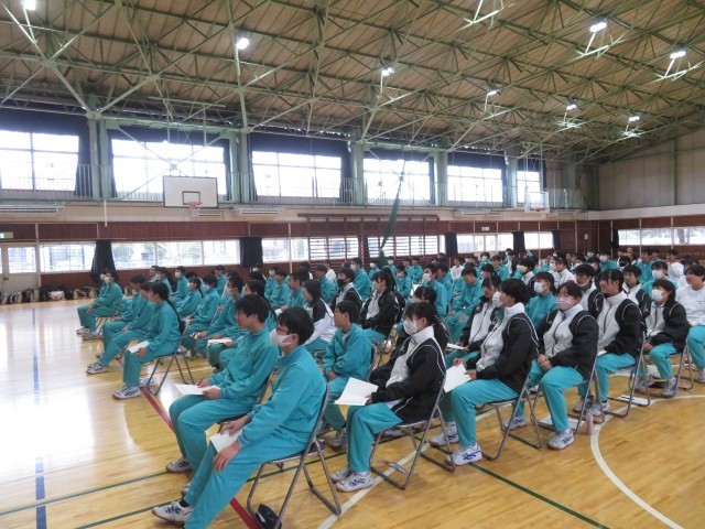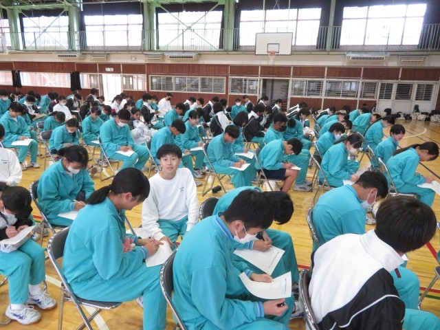 給食の時間には生徒会のメンバーから来週に迫っている期末テストに向けての学習方法の紹介を行いました。